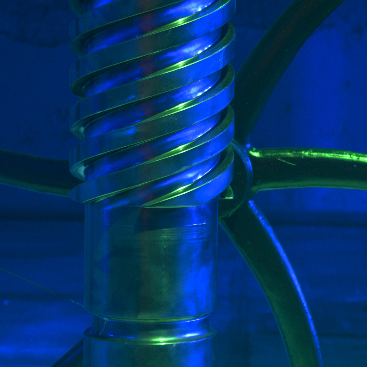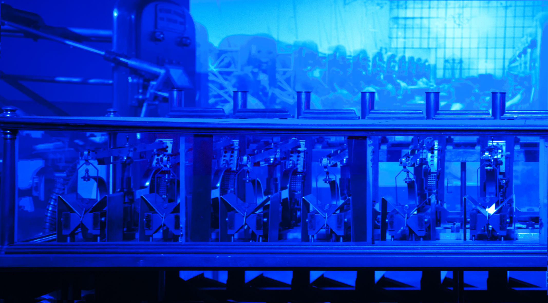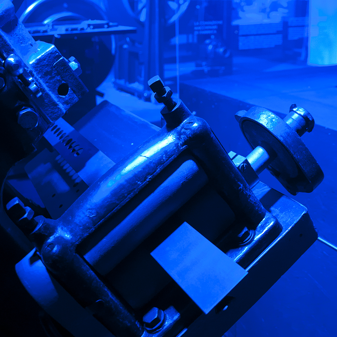 Un'installazione in cui le principali macchine per la coniazione del primo quarto/metà del Novecento rappresentano un'importante fase di rinnovamento tecnologico che ha caratterizzato il "nuovo" impianto della Zecca. Qui i macchinari e gli elementi fondamentali dell'azione meccanica divengono arte, sculture, segni di un processo di lavoro sapiente. Strumenti di lavoro che vibrano nella luce per divenire tracce del tempo ed elementi di storia industriale. Il tappeto sonoro richiama i suoni della pressione dei conii sui tondelli e l’atmosfera dell’officina che porta a compimento il processo di produzione di una moneta oppure di una medaglia.
